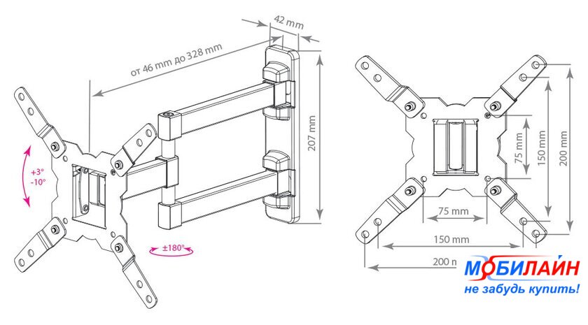 Расстояние от стены (потолка) | 46 — 328 мм |