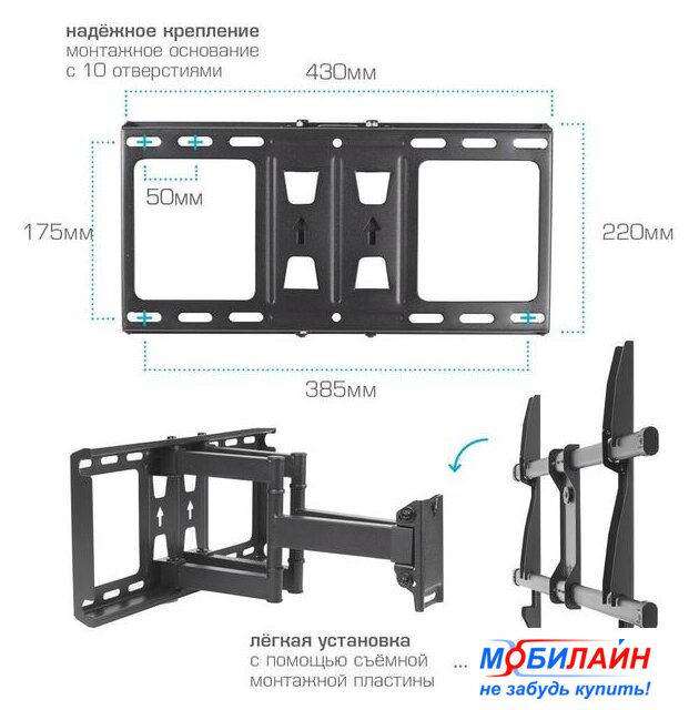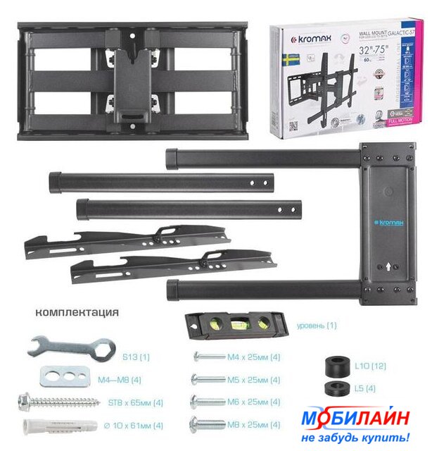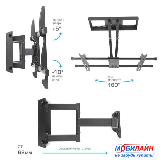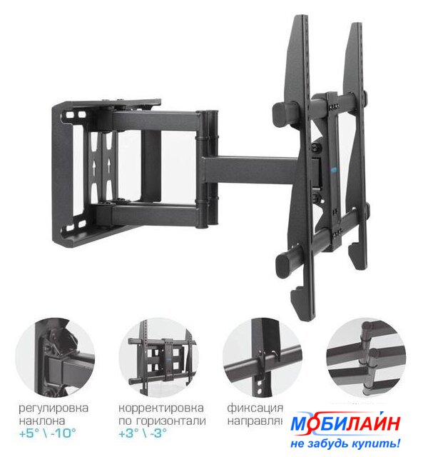настенный кронштейн для ЖК-телевизора 32-75", наклон 10°, поворот 180°, цвет черный