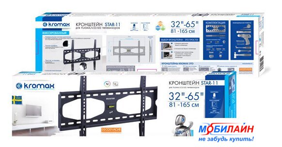 для ЖК-телевизоров, 32-65", настенный, цвет черный