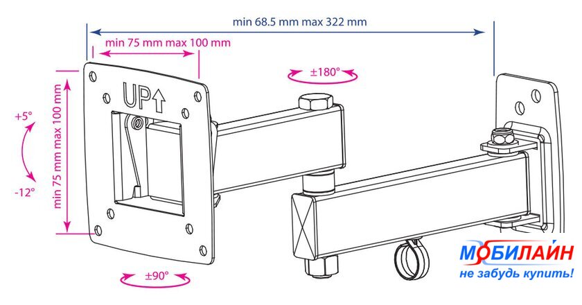 Расстояние от стены (потолка) | 68.5 — 322 мм |