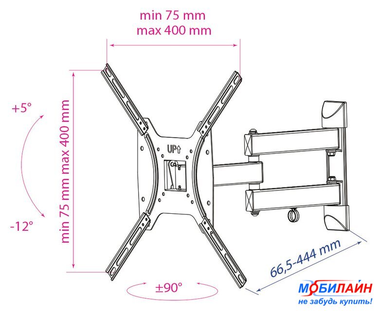| Расстояние от стены (потолка) | 66.5 — 444 мм |