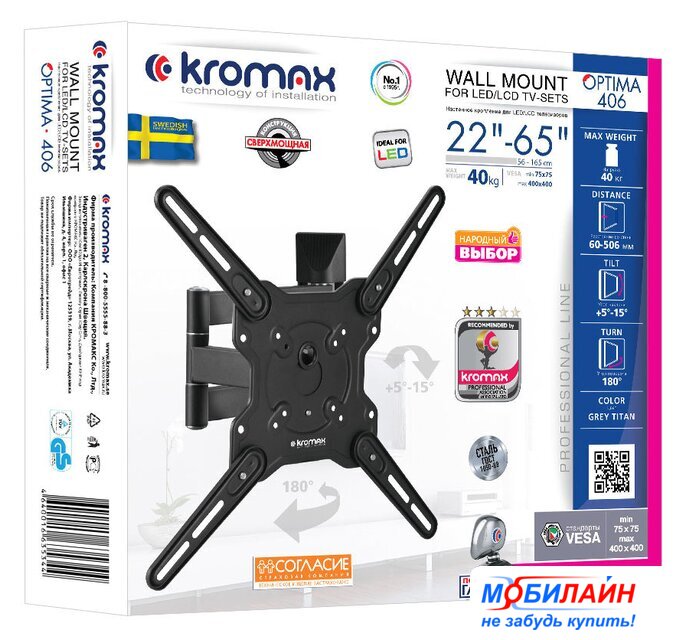 | Совместим с телевизорами | 22 — 65 " |
