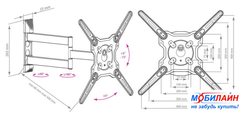 | Расстояние от стены (потолка) | 60 — 506 мм |