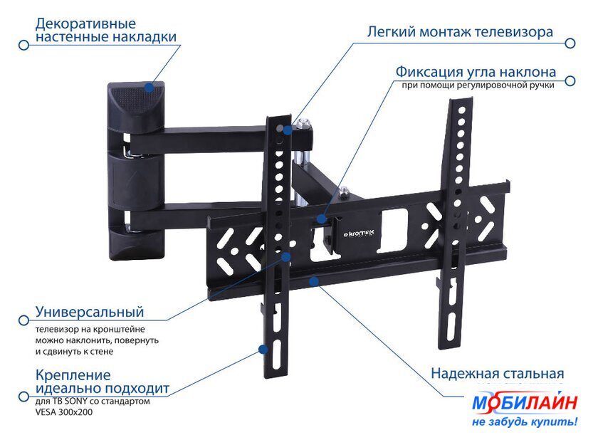 настенный кронштейн для ЖК-телевизора/для плазменного телевизора 32-55", наклон 12°, цвет темно-серый