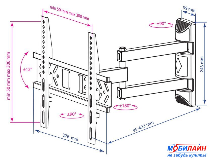 Расстояние от стены (потолка) | 95 — 423 мм |