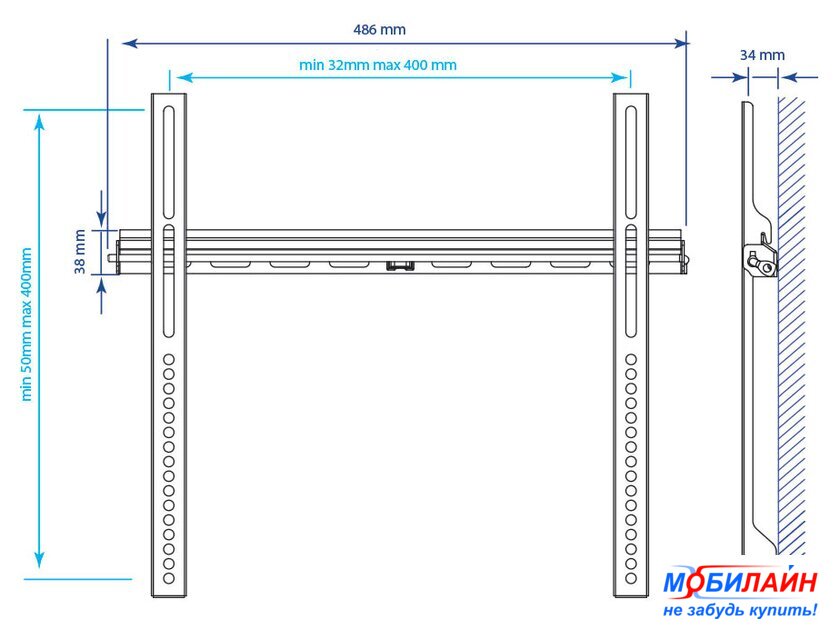 | Расстояние от стены (потолка) | 34 мм |