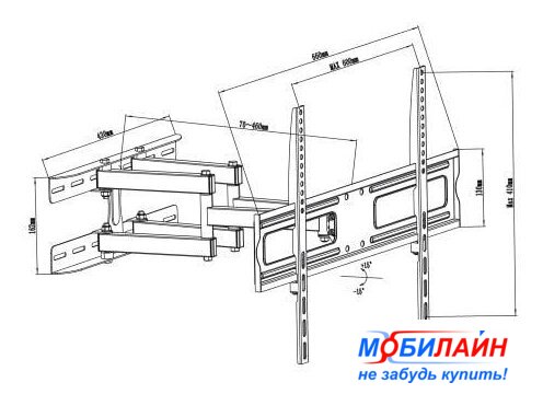 для ЖК-телевизоров, 32-60", настенный, поворотный, наклон 12°, поворот 80°, цвет черный