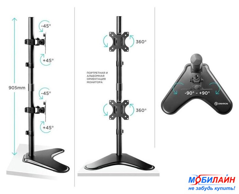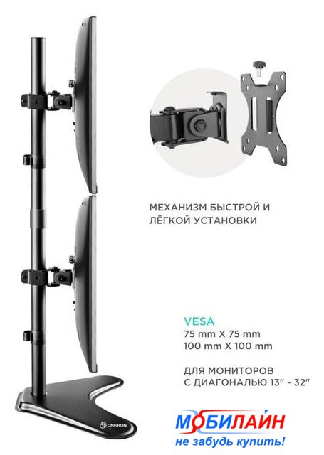 настольный кронштейн для ЖК-монитора 10-32", наклон 90°, поворот 360°, цвет черный