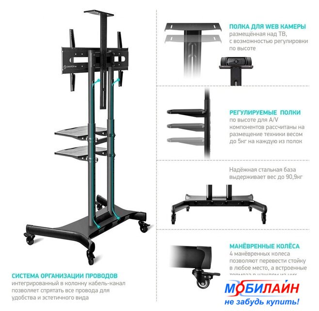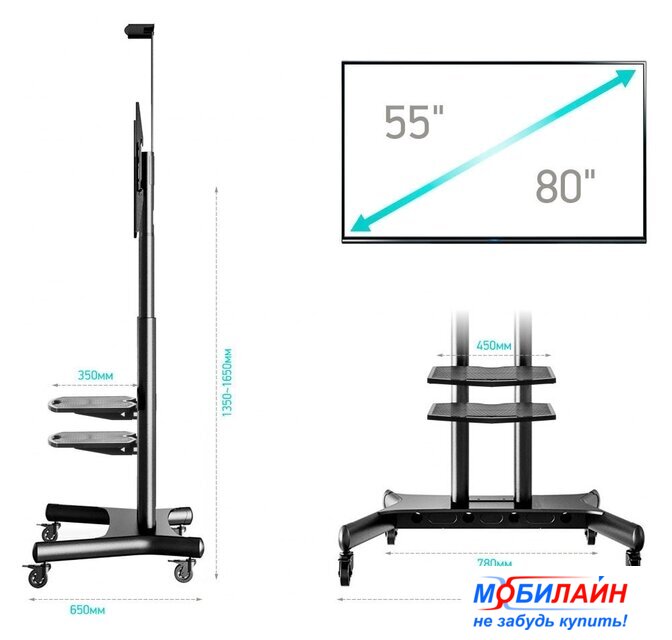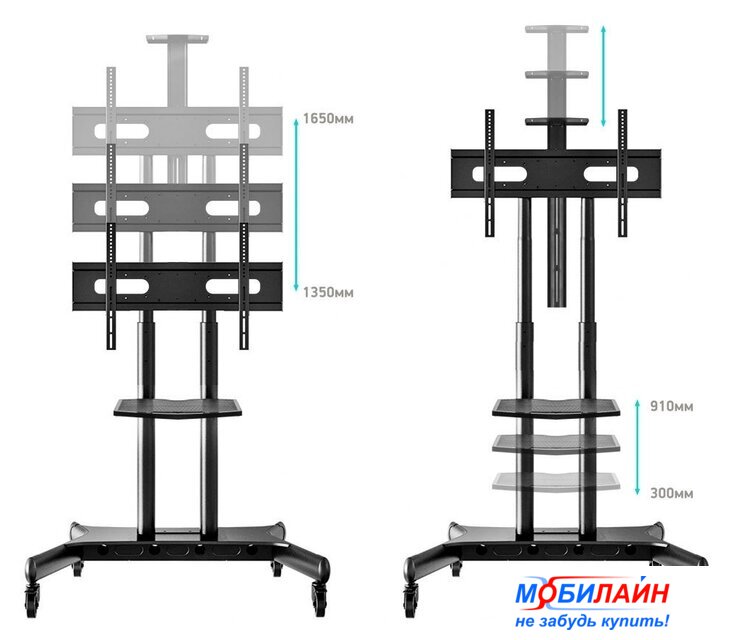 для ЖК-телевизоров, 60-105", напольный, с полкой, цвет черный