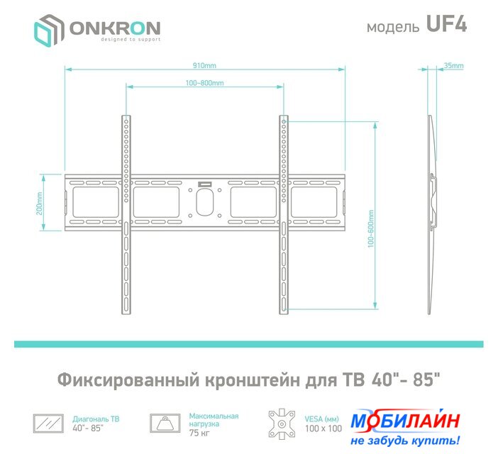 Совместимость с креплением VESA | 100x100, 200x100, 200x200, 200x300, 300x200, 300x300, 300x400, 400x300, 400x400, 600x400, 800x600 |
