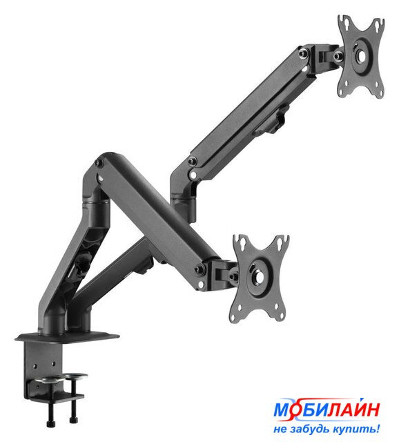 для мониторов, 17-32", 2 монитора, настольный, поворотный, с регулировкой высоты, кабель-канал, наклон 50°, поворот 180°, цвет черный
