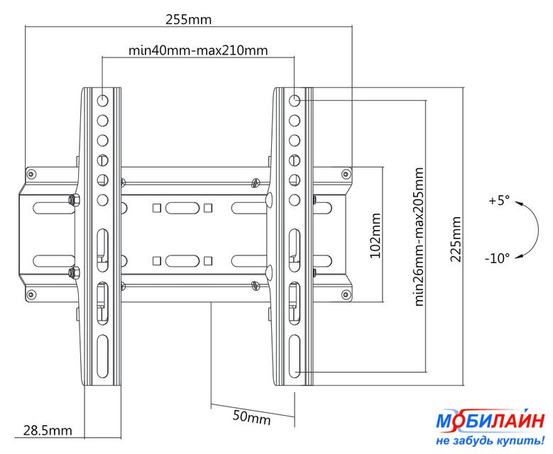 настенный кронштейн для ЖК-телевизора 22-40", наклон 15°, цвет черный