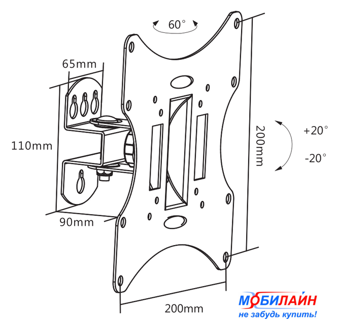для ЖК-телевизоров, 50", настенный, поворотный, наклон 20°, поворот 360°, цвет черный