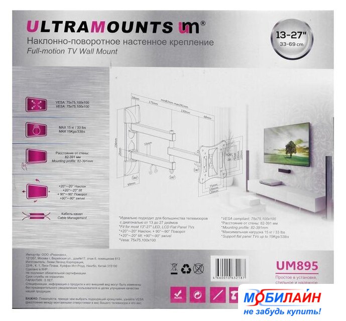 | Расстояние от стены (потолка) | 82 — 391 мм |