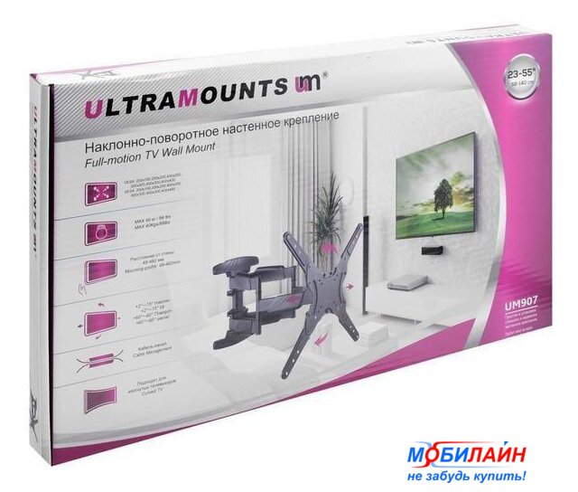 настенный кронштейн для ЖК-телевизора 15-55", наклон 12°, поворот 30°, цвет черный
