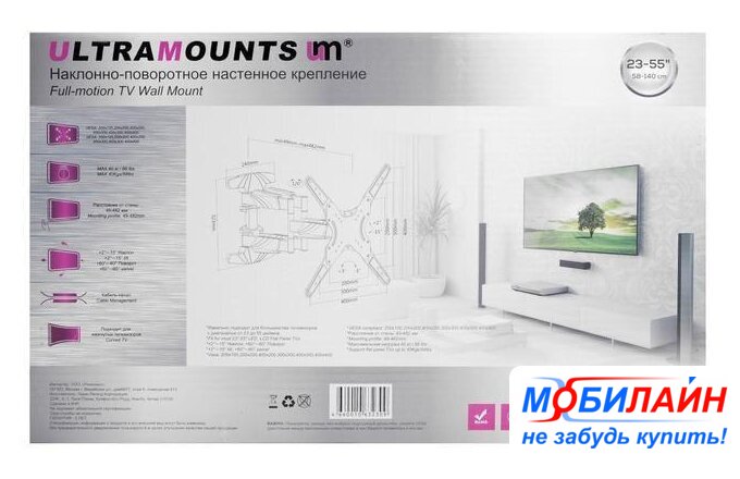 для ЖК-телевизоров, 32-120", настенный, цвет черный
