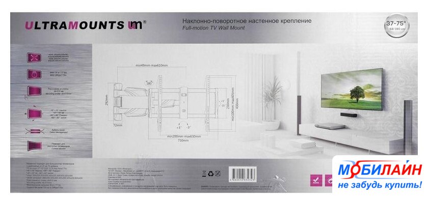 Совместим с телевизорами | 37 — 75 " |