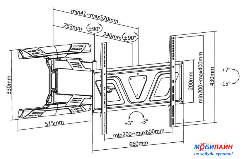 Расстояние от стены (потолка) | 41 — 520 мм |