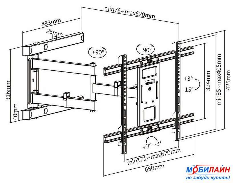 | Расстояние от стены (потолка) | 76 — 620 мм |