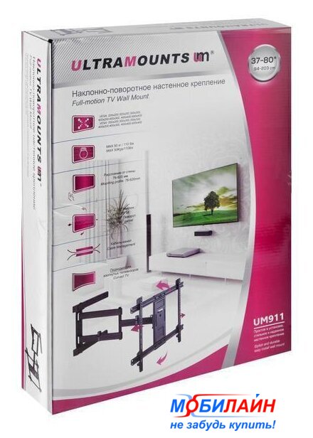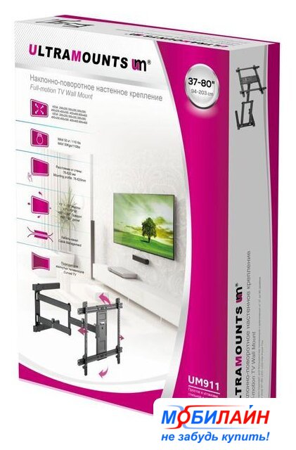настенный кронштейн для ЖК-телевизора 37-75", наклон 15°, поворот 90°, цвет черный
