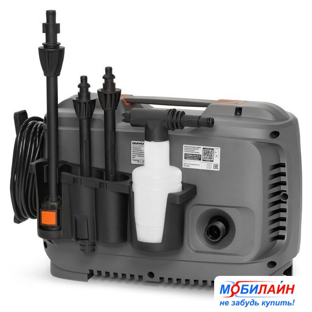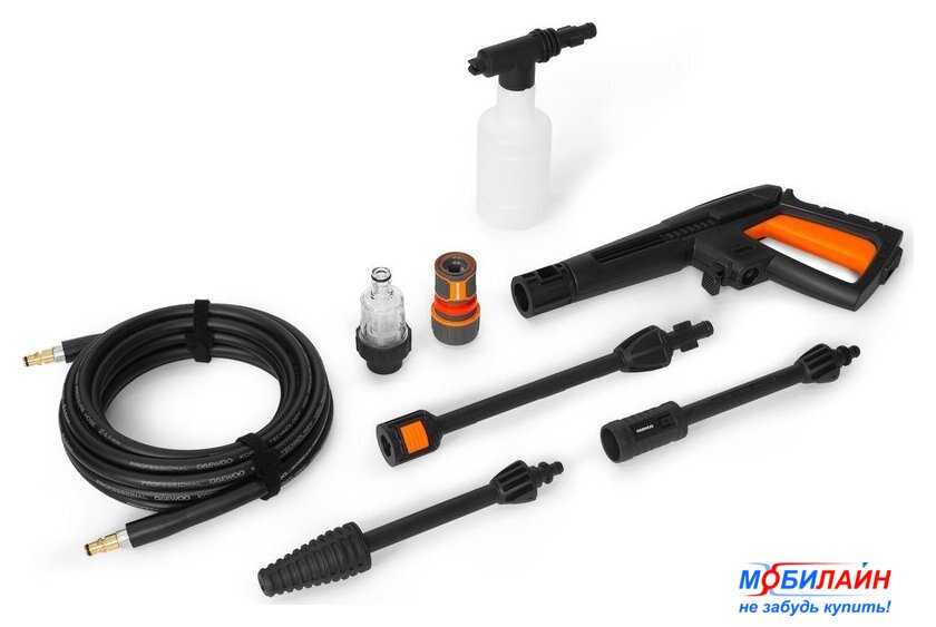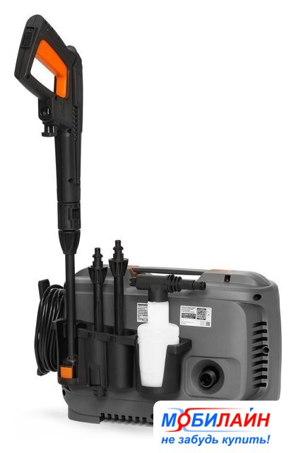 Комплектация | - Мойка высокого давления- Пистолет- Шланг высокого давления- Насадка на пистолет распылительная- Грязевая фреза- Пеногенератор- Фильтр тонкой очистки- Быстросъёмный коннектор 1/2 с аквастопом- Держатель аксессуаров |