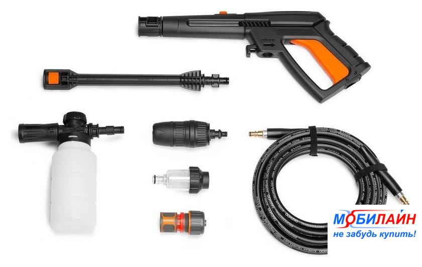 Комплектация | - Мойка высокого давления - 1 шт.- Пистолет - 1 шт.- Шланг высокого давления - 1 шт.- Насадка удлинитель - 1 шт.- Насадка 4 в 1 - 1 шт.- Фильтр очистки воды - 1 шт.- Быстросъемный коннектор - 1 шт.- Пеногенератор - 1 шт.- Игла для прочистки форсунки - 1 шт.- Руководство по эксплуатации- Гарантийный талон- Коробка |