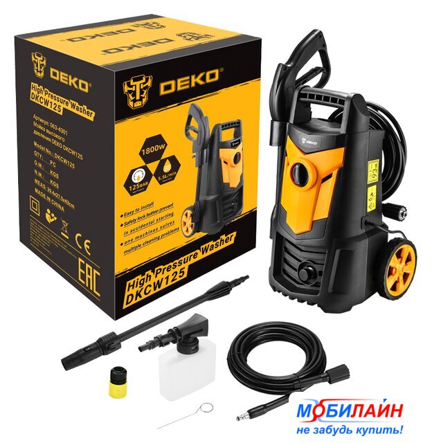 | Комплектация | Мойка высокого давленияПистолет Шланг высокого давленияНасадка-распылитель Насадка-щёткаЕмкость для моющих средств ИнструкцияКоробка |