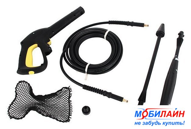 Комплектация | - Пистолет, стандартный (Quick Connect);- Струйная трубка Vario Power;- Грязевая фреза;- Шланг высокого давления, 8 м;- Разъем Quick Connect на корпусе аппарата;- Система подачи чистящего средства, всасывающая трубка;- Телескопическая ручка;- Двигатель водяного охлаждения;- Встроенный фильтр для воды;- Адаптер для садового шланга A3/4". |