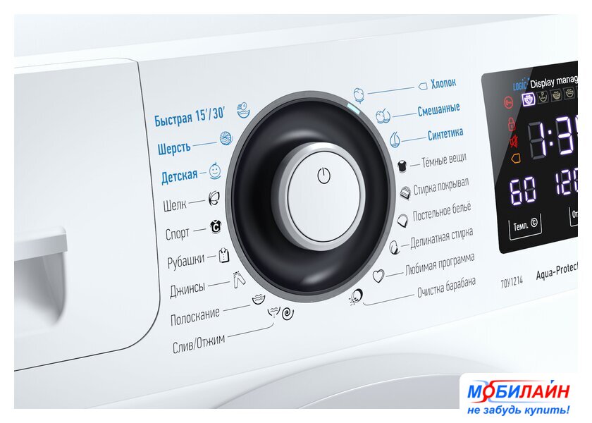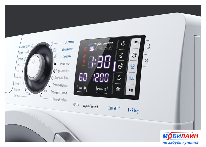 отдельностоящая, автоматическая стиральная машина, загрузка до 7 кг, отжим 1200 об/мин, глубина 40.6 см (с люком 48.9 см), энергопотребление A++, защита от протечек, Aquastop, 18 программ