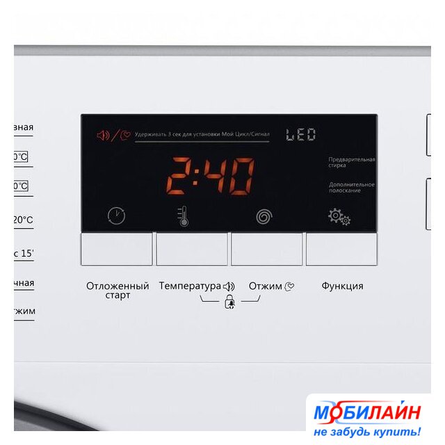 Все программы | Мой режимХлопок интенсивнаяХлопок 60°Хлопок 40°Хлопок 20°Экспресс 15'РучнаяПолоскание и ОтжимОтжимСливШерстьДеликатнаяСмешанные тканиСинтетикаСпортивная одеждаДетская одежда |