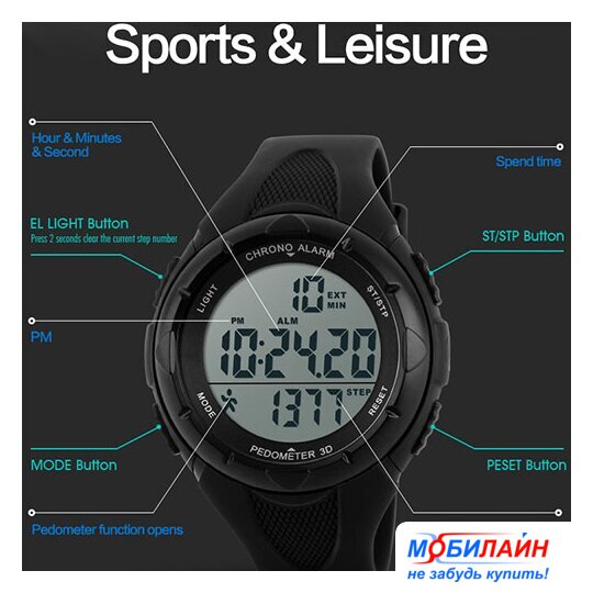 мужские, механизм электронный, корпус: пластик, 55 мм, пластиковое стекло, 50 м, браслет пластиковый
