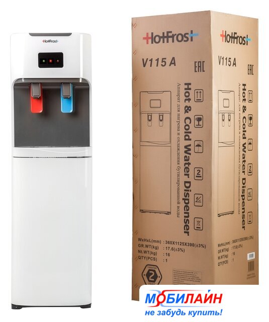 напольный, компрессорное охлаждение, нагрев, бутыль сверху, кран: нажим кружкой