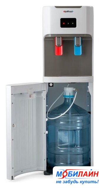 напольный, компрессорное охлаждение, нагрев, бутыль сверху, кран: клавиша, встроенный холодильник