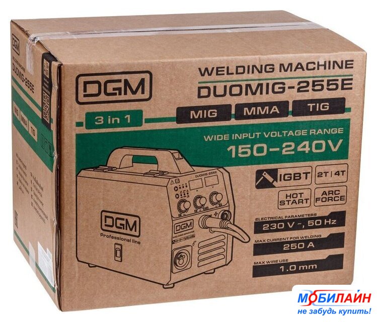 Комплект поставки | - Полуавтомат сварочный;- Горелка сварочная MIG - 3 метра;- Клемма заземления - 1,6 метра;- Электрододержатель MMA - 1,8 метра;- Контактный наконечник 0,8 мм. - 1 шт.;- Контактный наконечник 1,0 мм. - 1 шт.;- Руководство по эксплуатации. |