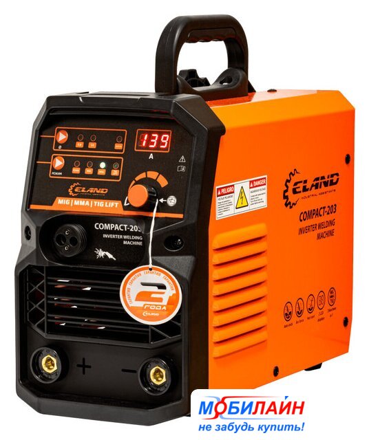 Комплект поставки | • сварочный аппарат;• электрододержатель с кабелем (1,65 м);• клемма заземления с кабелем (1,4 м);• съемный рукав MIG (1,85 м);• руководство по эксплуатации;• гарантийный талон. |