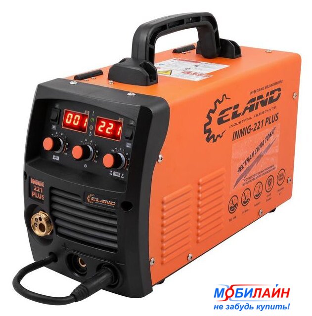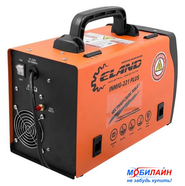 ручная дуговая сварка (MMA)/полуавтоматическая сварка (MIG MAG), 220 В, сварочный ток: 30–200 А, диаметр электрода: 1.6–5 мм, 12.1 кг