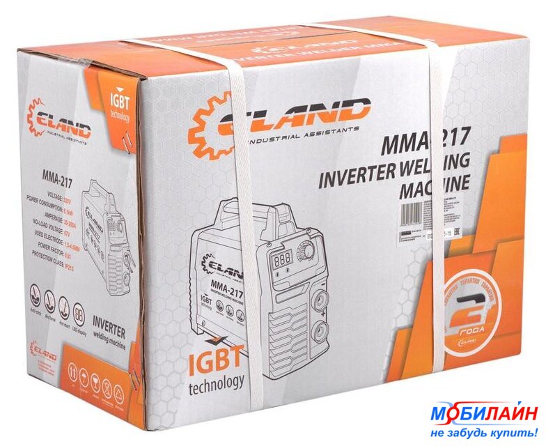 ручная дуговая сварка (MMA)/полуавтоматическая сварка (MIG MAG FCAW)/аргонодуговая сварка (TIG), входное напряжение 220–240 В, сварочный ток: 10-200 А, диаметр электрода: 1.6–4 мм, 5.7 кг