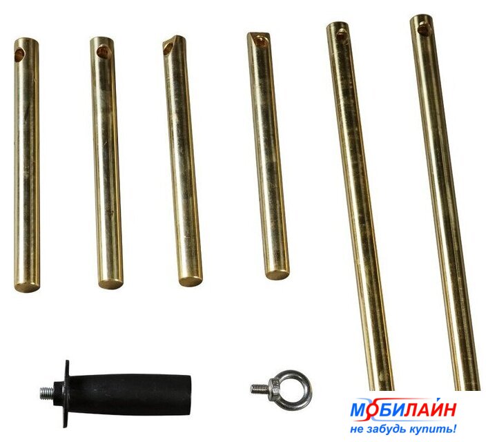 Комплект поставки | - Латунная консоль 350 мм, O 20 мм – 2 шт.- Латунная консоль 220 мм, O 20 мм, прямая – 2 шт.- Латунная консоль 220 мм, O 20 мм, срезанная – 2 шт.- Кольцо для подвешивания – 1 шт.- Боковая рукоятка – 1 шт.- Пластиковый кейс для хранения и транспортировки |