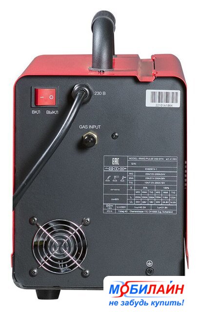 ручная дуговая сварка (MMA)/полуавтоматическая сварка (MIG MAG)/аргонодуговая сварка (TIG), 220 В, сварочный ток: 10–175 А, диаметр электрода: 0.6–1 мм, 12.8 кг