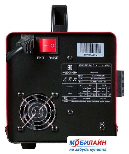 ручная дуговая сварка (MMA), входное напряжение 220–240 В, сварочный ток: 15-130 А, диаметр электрода: 1.6–3.2 мм, 3.75 кг