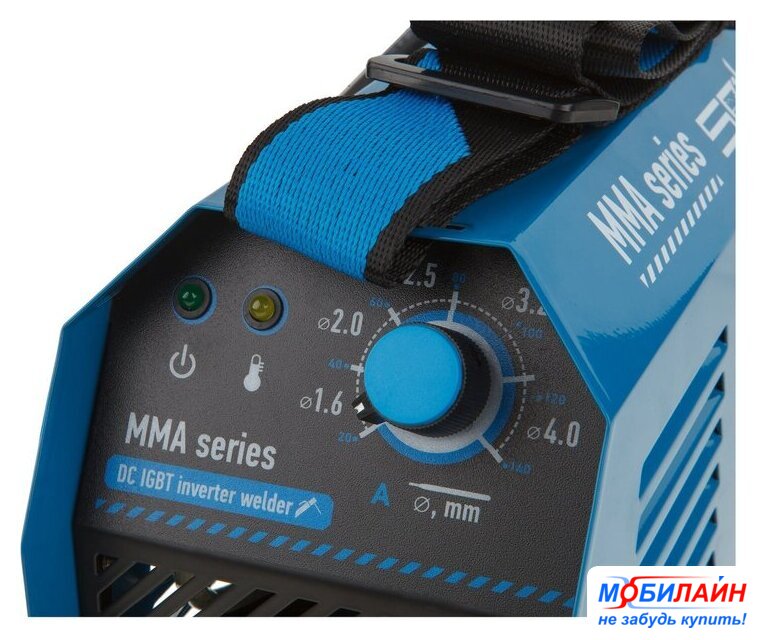 ручная дуговая сварка (MMA), входное напряжение 220 В, сварочный ток: 10-160 А, диаметр электрода: 1.6–3.2 мм, 4.5 кг