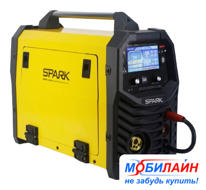 ручная дуговая сварка (MMA)/полуавтоматическая сварка (MIG MAG), входное напряжение 220 В, сварочный ток: 20–250 А, диаметр электрода: 1.6–5 мм, 9.5 кг