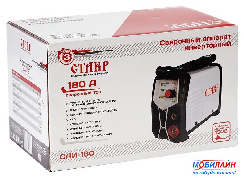 ручная дуговая сварка (MMA)/полуавтоматическая сварка (MIG MAG FCAW), входное напряжение 220 В, сварочный ток: 15-175 А, диаметр электрода: 2–4 мм, 3.5 кг