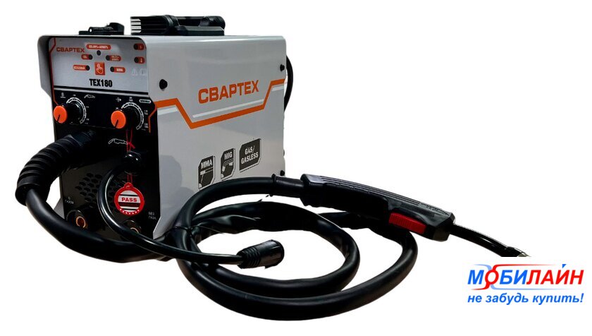 ручная дуговая сварка (MMA)/полуавтоматическая сварка (MIG MAG), входное напряжение 195–245 В, сварочный ток: 20–180 А, диаметр электрода: 2–4 мм, 8.6 кг