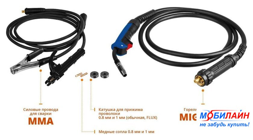 Комплект поставки | - Аппарат сварочный;- Горелка MIG/MAG;- Кабель с клеммой заземления;- Комплект сопел;- Руководство по эксплуатации. |
