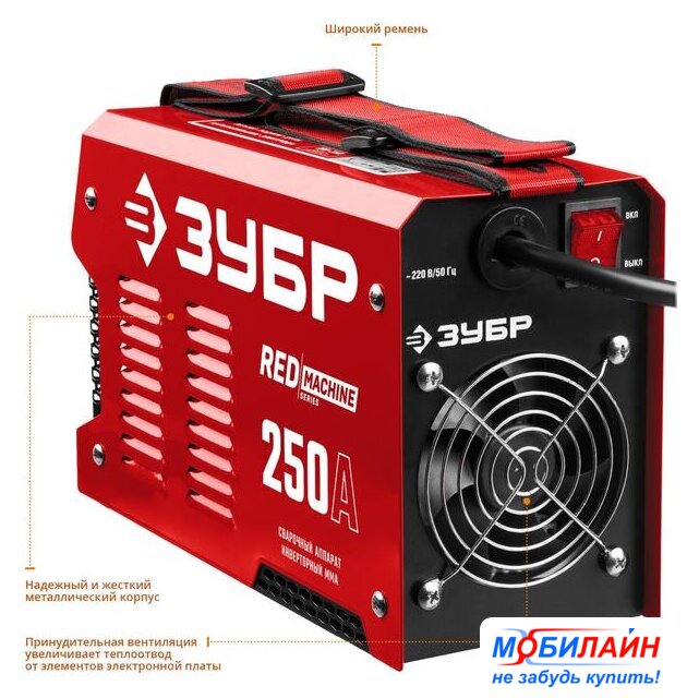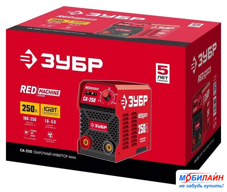ручная дуговая сварка (MMA)/полуавтоматическая сварка (MIG MAG FCAW)/аргонодуговая сварка (TIG), входное напряжение 150–240 В, сварочный ток: 30-250 А, диаметр электрода: 1.6–4 мм, 9.4 кг