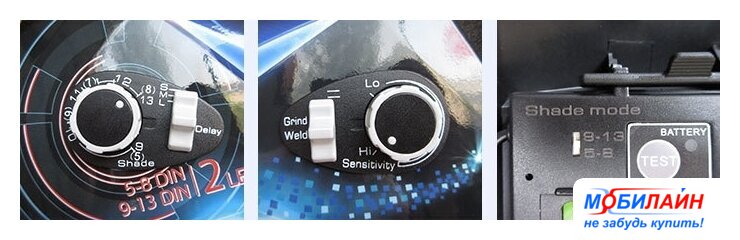 | Диапазон затемнения светофильтра | 5 — 13 DIN (DIN5-DIN8 для сварки на малых токах, DIN9 - DIN13 для стандартных сварочных задач) |
