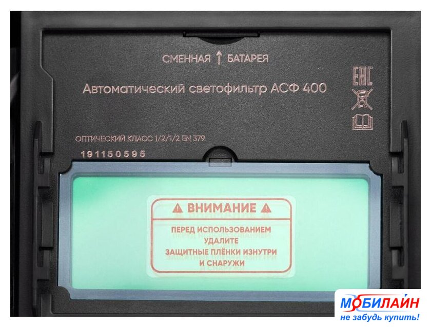 | Диапазон затемнения светофильтра | 9 — 13 DIN |