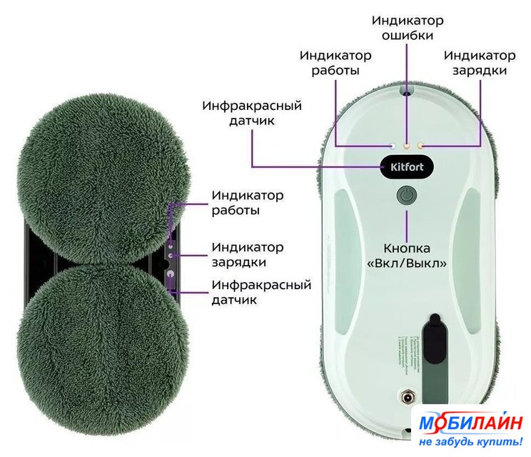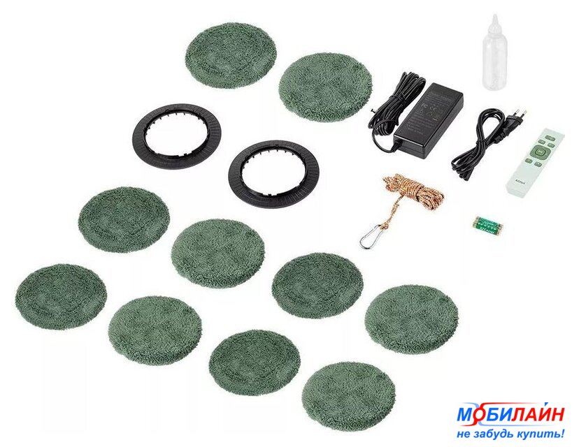 Комплектация | - пульт ДУ, - документация, - сетевой кабель, - батарейки (2 шт.), - ткань для влажной уборки (10 шт.), - страховочный трос, - кольцо для салфеток (4 шт.), - флакон. |