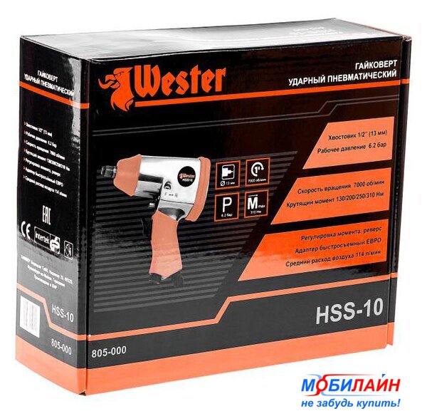 ударный, 600 Нм, 7000 об/мин, расход воздуха: 204 л/мин, давление: 6.3 бар, 2000 г